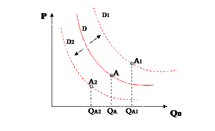 Рис.5. Смещение кривой спроса под влиянием неценовых факторов