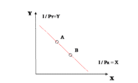Бюджетная линия – все товарные наборы, соответствующим точкам на бюджетной линии по стоимости равны доходу и являются доступными.