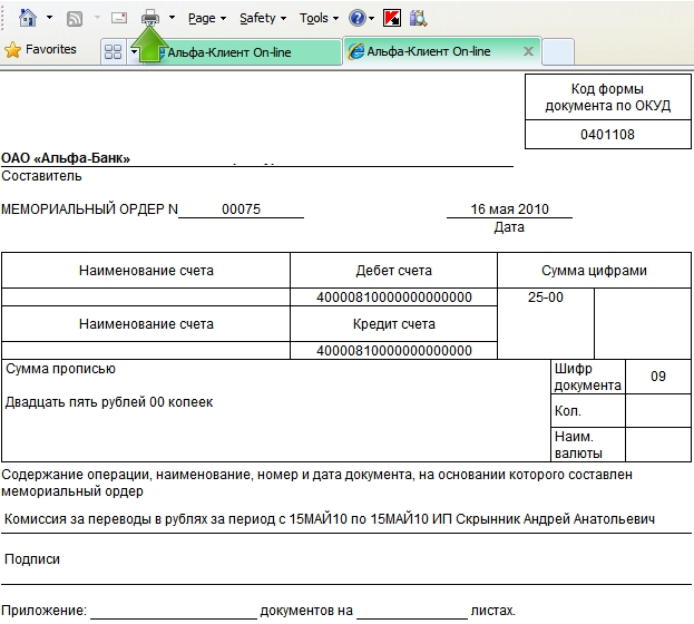 - Система откроет приложения к выписке по счету за указанный период. Нажать «Просмотр и печать»;