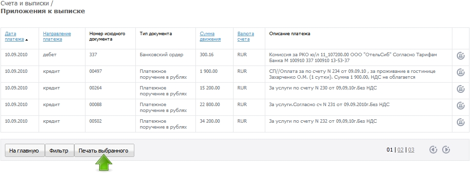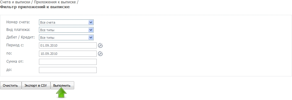 - В фильтре укажите необходимый номер счета и период. Нажмите на кнопку "Выполнить";