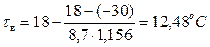 Пример 1. Проверить возможность конденсации водяных паров на внутренней поверхности ограждения при t в = 18 оС, t н = - 30 оС, R o = 1,156, φ = 60%.