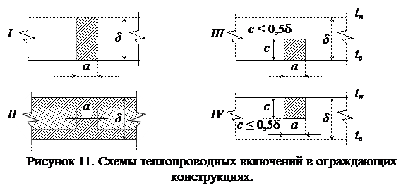 определяется по таблице 4 в соответствии со схемой включений (рис.11). При а /δ = 1,5 теплопроводное включение должно рассматриваться как самостоятельная часть ограждения.