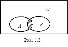 Определение. Пересечением множеств A и B (обозначение A B) называется множество, состоящее из элементов x, которые принадлежат и множеству A и множеству B (рис. 1.3):