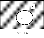 Определение. Абсолютным дополнением множества A называется множество всех элементов, не принадлежащих A, т.е. множество A = U\A, где U - универсальное множество (рис. 1.6).