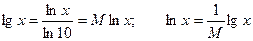 , где М = 1/ln10» 0,43429…- модуль перехода.