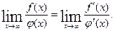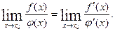 , тогда предел отношения двух функций равен пределу отношения производных этих функций, т.е.