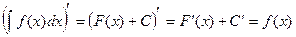 2. Неопределенный интеграл от дифференциала функции f(x) равен функции f(x) с точностью до постоянного слагаемого, т.е.