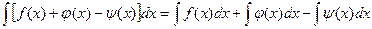 4. Неопределенный интеграл алгебраической суммы конечного числа функций равен алгебраической сумме неопределенных интегралов этих функций, т.е.