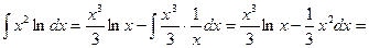. Здесь выгодно продифференцировать lnx, т.к. тогда получится степенная функция, которая проще логарифмической, а второй множитель x2 dx интегрируем.
