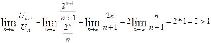 Пример 3. Исследуем на сходимость по признаку Даламбера ряд.
