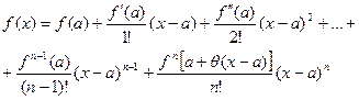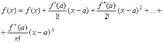 2.Если f(x)- любая функция, имеющая в некотором промежутке, содержащем точку а, все производные до порядка n включительно, то имеет место формула: