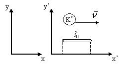 - относительность временных интервалов одного и того же события в системах отсчета К и К`: