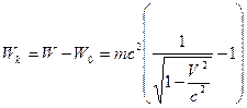 Полная энергия включает и энергию движения, т.е. кинетическую энергию. Поэтому кинетическая энергия тела определяется как разность между полной энергией и энергией покоя