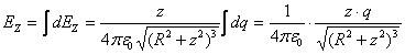 В соответствии с принципом суперпозиции сложим проекции dEz полей, создаваемых в искомой точке всеми участками заряженного кольца. Предел этой суммы - это криволинейный (контурный) интеграл: