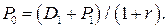 С финансовой точки зрения соотношение (2.24) означает, что, оценивая текущую стоимость акции при предполагаемом периоде владения 1 год, инвестор учитывает как дивиденд за этот период, так и прирост ее курсовой стоимости. Вновь применяя формулу (2.20) и принцип дисконтирования, получим оценочную стоимость акции при предполагаемом периоде владения 2 года