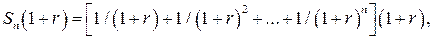 Обоснование равенства (2.9) требует совершенно аналогичных, только более громоздких выкладок. Соотношения для наращенных стоимостей аннуитетов (формулы (2.8) и (2.10)) получаются из формул для дисконтированных стоимостей путем умножения последних на (1+r)n.