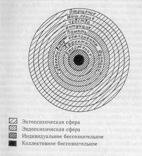 Разумеется, никакая психическая система не может быть отражена в такой грубой диаграмме. Это, скорее, шкала оценок, показывающая, как энергия или интенсивность ЭГО-комплекса, манифестирующая себя в волевом усилии, уменьшается по мере приближения к темной сфере - бессознательному. Прежде всего мы вступаем в личностное подсознание, некий порог в сфере бессознательного. Это часть психики, содержащая те элементы, которые могут быть осознанными. Многие вещи именуются бессознательными, но это относительно. Есть люди, для которых осознанно практически все, что может осознать человек. Конечно, в нашем цивилизованном мире есть много неосознанных вещей, хотя индусы, китайцы, к примеру, осознают то, к чему наши психоаналитики идут долгим, сложным путем. Более того, живущий в естественных, природных условиях человек удивительным образом осознает то, о чем городской житель просто не догадывается, а если и вспоминает, то лишь под влиянием психоанализа. Я обнаружил это еще в школе. Я жил в деревне, среди крестьян, и знал то, чего не знали другие мальчишки в городе. Просто мне представился случай и это во многом помогло мне. Анализируя сны или симптомы фантазий невротиков или обычных людей, вы проникаете в сферу бессознательного, вы переступаете этот искусственный порог.