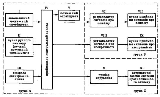 группа С - дополнительное оборудование для включения автоматических средств противопожарной защиты.