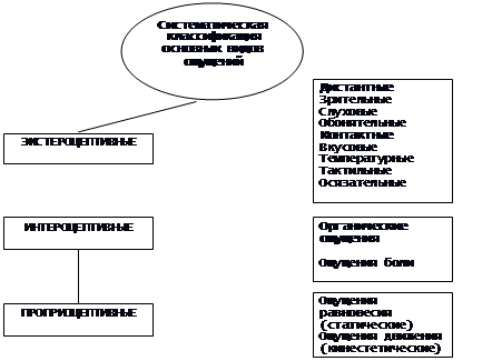 Систематическая классификация основных видов ощущений была предложена английским физиологом Ч. Шеррингтоном (см. рисунок)