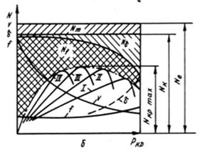Анализируя равенство (70) замечаем, что развиваемая двигателем мощность расходуется на полезную работу (Nкр и Nвом) и на неизбежные потери.