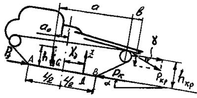 Величина Х может быть легко найдена из уравнения моментов всех сил относительно точки В или А (при жесткой, небалансирной подвеске). Если равнодействующая нормальных сил проходит через одну из этих точек, например, через В (х=а), это означает начало потери устойчивости. Максимальные статические углы продольной устойчивости для незагруженного трактора, т.е. Gгр=0, Ркр=0 определяется из равенства: