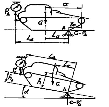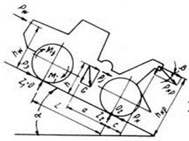 Следовательно, предельный угол подъема (спуска) зависит от соотношения базы машины L и высоты центра тяжести h, а также от его продольной координаты «а».