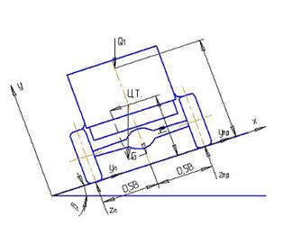 Рисунок 16 Схема сил, действующих на машину на поперечном уклоне