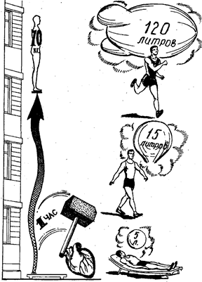 Рис. 1. Работа сердца в покое (по В.Н. Добровольскому). Работа легких (вентиляция легких).