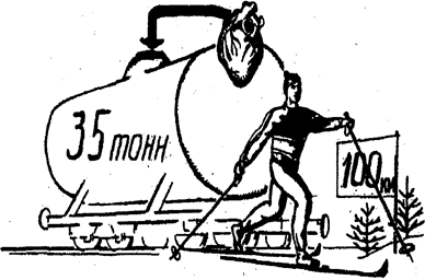 Рис. 2. Работа сердца при прохождении спортсмена-лыжника дистанции 100 км (по Н.В. Добровольскому)