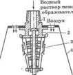 В обычное время клапан сшгинклера закрывает выход водному раствору пенообразователя и удерживается в этом положении двумя замками с легкоплавким припоем. При расплавлении замка клапан отбрасывается и раствор выходит из насадки и разбрызгивается от отражающих плоскостей распылителя. Воздух подсасывается через отверстие в кожухе и смешивается с раствором, в результате чего образуется воздушно-механическая пена.