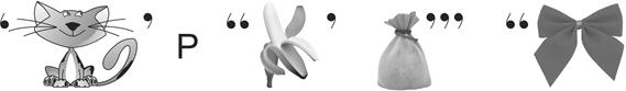 ‘ «К о т» ‘, р, “ «ба на н» ’, «ме шок»’’’, “ «ба нт» (орнамент)