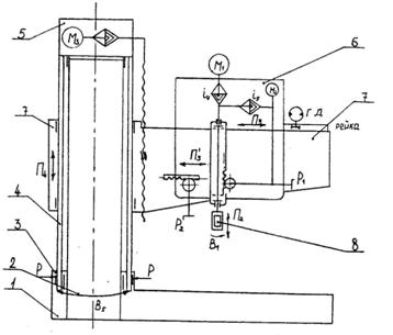 1-станина; 2-строл; 3-стойка; 4-поперечина (траверса); 5,7-вертикальные суппорты;