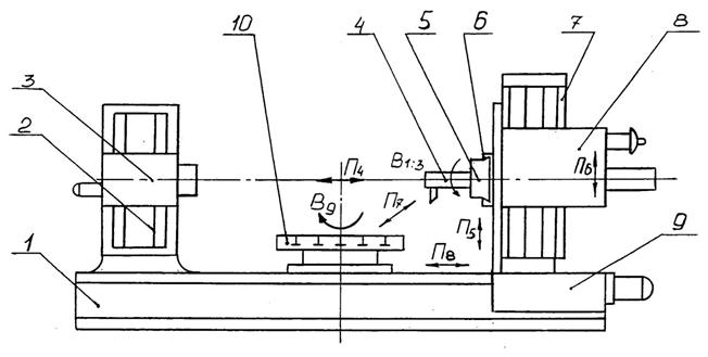 6-шпиндельная каретка; 8-механизм подачь; 9-боковой суппорт.