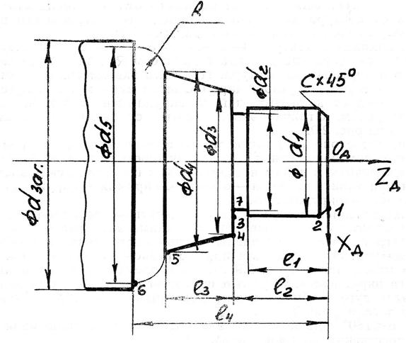 Примечание: в данном примере координатные оси X, Z применяют для задания абсолютных размеров, а U, W – для задания относительных размеров.