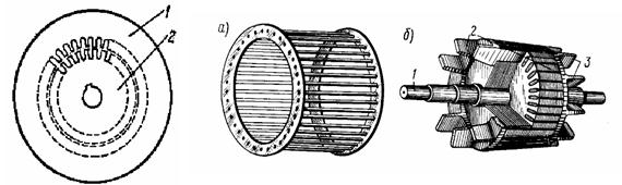На внутренней поверхности статора и на внешней поверхности ротора имеются пазы, в которых размещаются проводники обмоток.