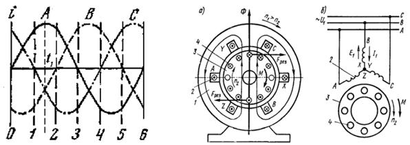 Работа асинхронной машины (АМ) основана на взаимодействии вращающегося магнитного поля статора с индуктированными в к.з. обмотке ротора токами.