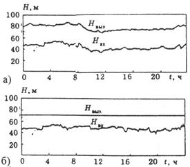 Рис.6 Диаграммы входного и выходного давления нерегулируемого а) и регулируемого б)