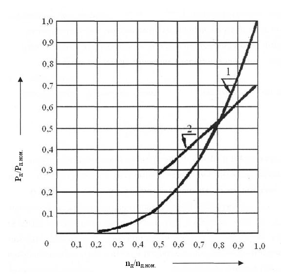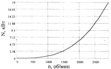 Рис.7 Зависимость мощности насосного агрегата от скорости вращения
