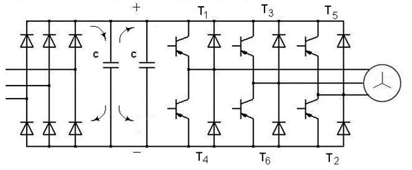 Рис.11 Схема ПЧ с ШИМ на IGBT транзисторах с регенеративным торможением