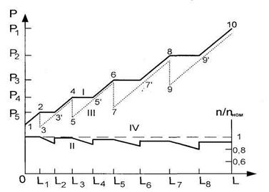 Рис.15 Изменение давления на выходе бурового насоса и скорости привода при регулируемом и нерегулируемом приводах: