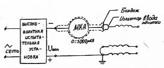 Для испытания обмоток СД собирается испытательная схема согласно рисунку А.1.6.