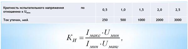 Оценку результатов диагностирования необходимо производить по кривой зависимости тока утечки от испытательного напряжения, которая не должна иметь крутого изгиба, а также по коэффициенту нелинейности, который для электродвигателей мощностью до 5000 кВт включительно должен быть не более 1,2