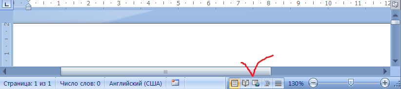 Однако выбрать режим просмотра документа можно при работе в любой вкладке Word 2007. Ярлыки режимов просмотра документа обычно расположены в правой части строки состояния (рис.).