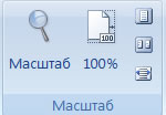 Изменить масштаб отображения документа можно при работе в любой вкладке Word 2007. Щелкните по кнопке со знаком “+” (плюс) для увеличения масштаба или по кнопке со знаком “-” (минус) для уменьшения (рис.). Масштаб можно