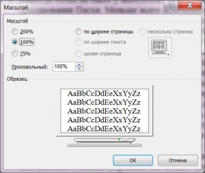 Нажав кнопку Масштаб в диалоговом окне Масштаб (рис.), можно установить требуемый масштаб отображения документа.