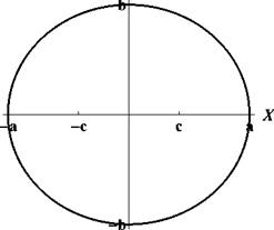 Точки с координатами (c, 0) и (— c, 0), где c = ^a"^ — b ^, называют фокусами.