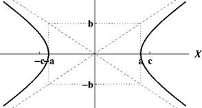 Правило рисования: Сначала рисуют прямоугольник с полуосями a и b, затем через его вершины проводят асимптоты, а затем — саму гиперболу.