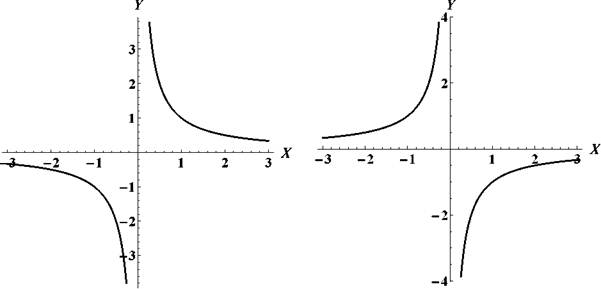 | Рис. 9: Гиперболы y = - -а y = —- |