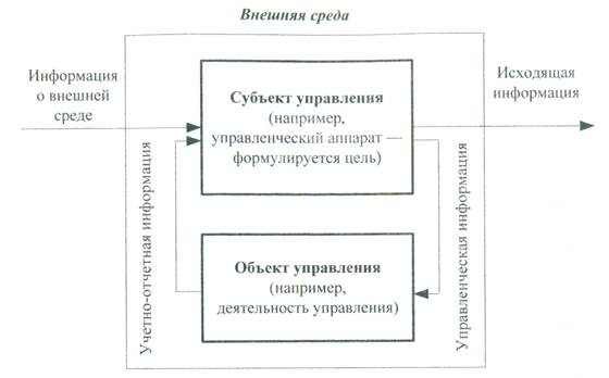 С позиций кибернетики такой процесс трактуется, как направленное воздействие на элементы системы для достижения цели, и может быть представлен в виде информационного процесса, связывающего внешнюю среду, объект и аппарат управления.