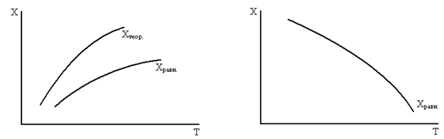 При повышении температуры увеличивается константа скорости реакции и уменьшается X
